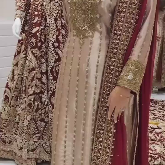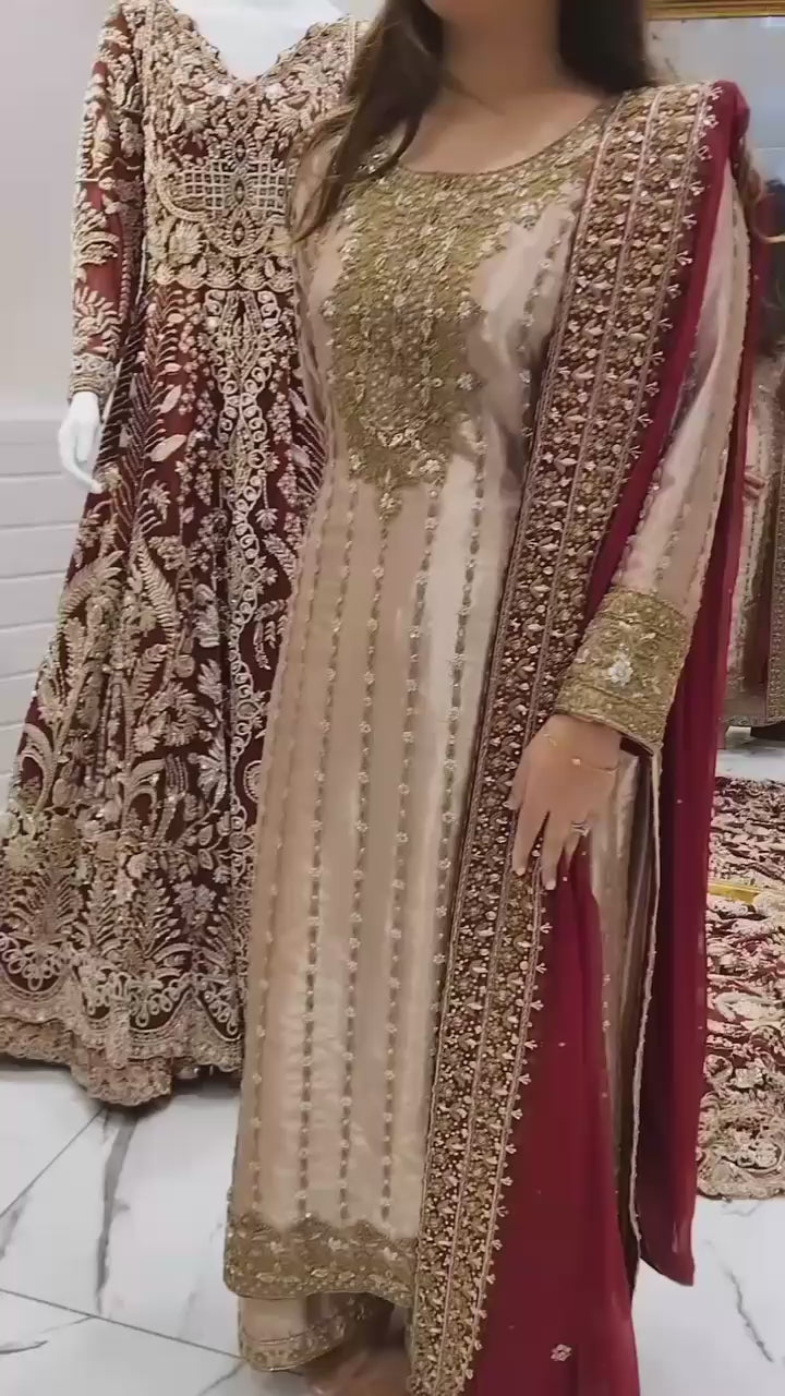 New Beige Heavy Devsena Silk with Embroidery 3 Piece Plazo Suit Set