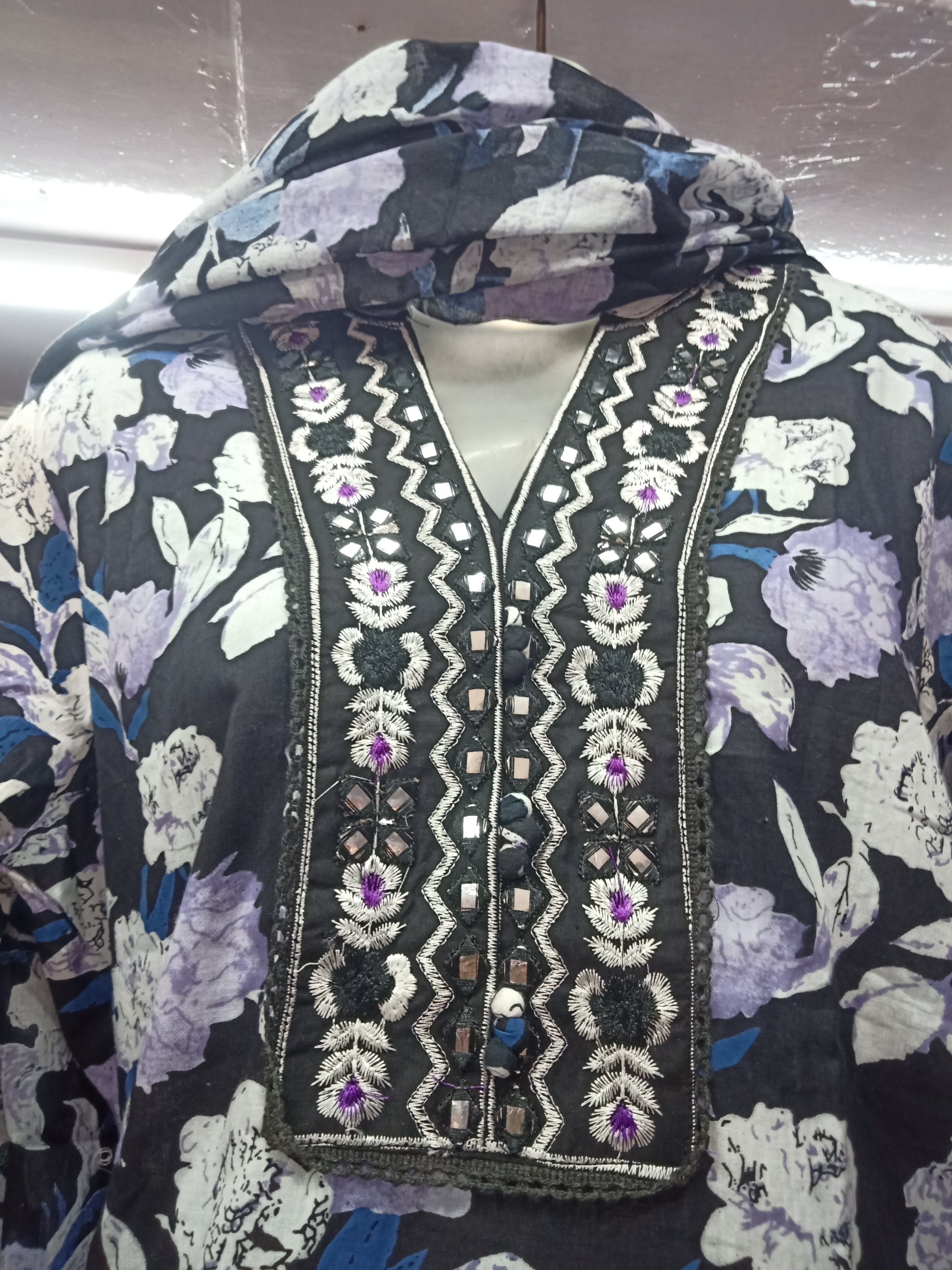 Get ready to make a statement with our V-neck cotton printed kurtas and dupatta set! Made with organic cotton and featuring a stunning handmade design, these printed kurtas are perfect for any occasion. The v-neck design and black colour add a touch of sophistication, and with sizes ranging from 38 to 44, you'll find the perfect fit. Elevate your style and support sustainable fashion with this must-have set.